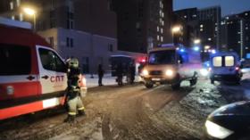 An explosion has killed two men near the entrance of a residential building in southeastern Moscow, according to witnesses.